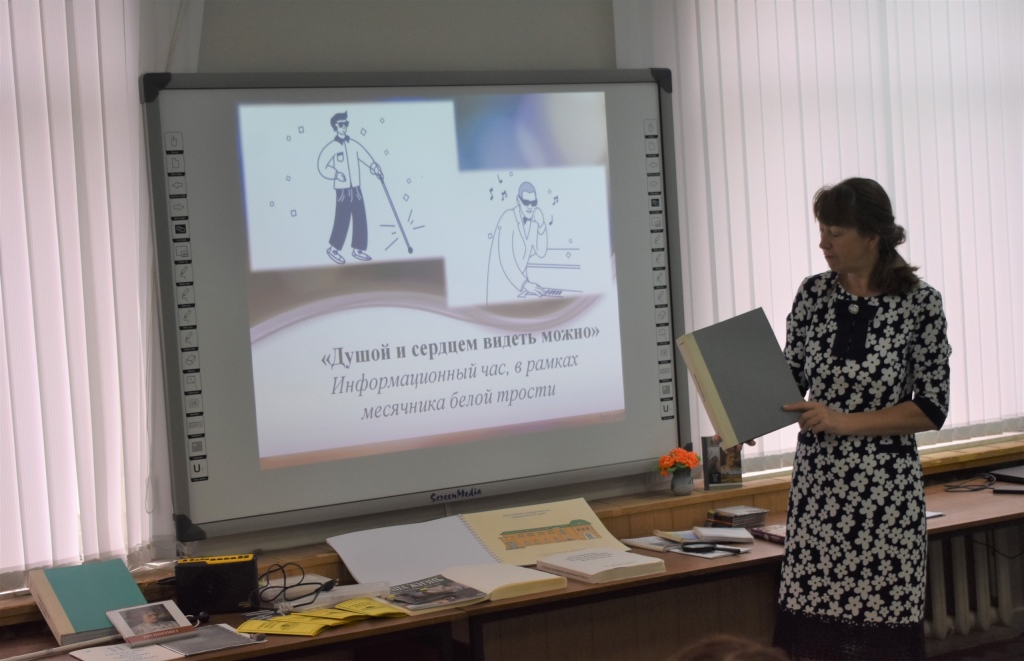 16 октября в библиотеке-филиале №2, в рамках месячника «Белой трости», для членов Губкинской местной организации Всероссийского общества слепых прошел информационный час «Душой и сердцем видеть можно».